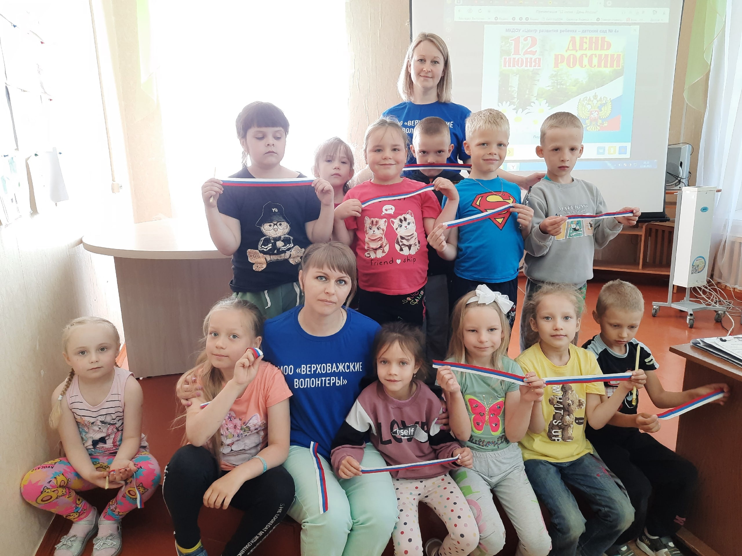 13 июня 2023 года в рамках XII Всероссийской акции «Добровольцы-детям» участники молодёжного общественного объединения "Верховажские волонтёры" совместно со специалистами Комплексного центра подготовили и провели мероприятие, посвящённое Дню России, "Россия – Родина моя!" для детей, посещающих оздоровительный лагерь с дневным пребыванием на базе Комплексного центра.
